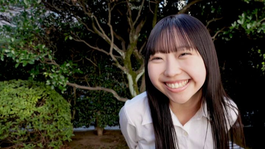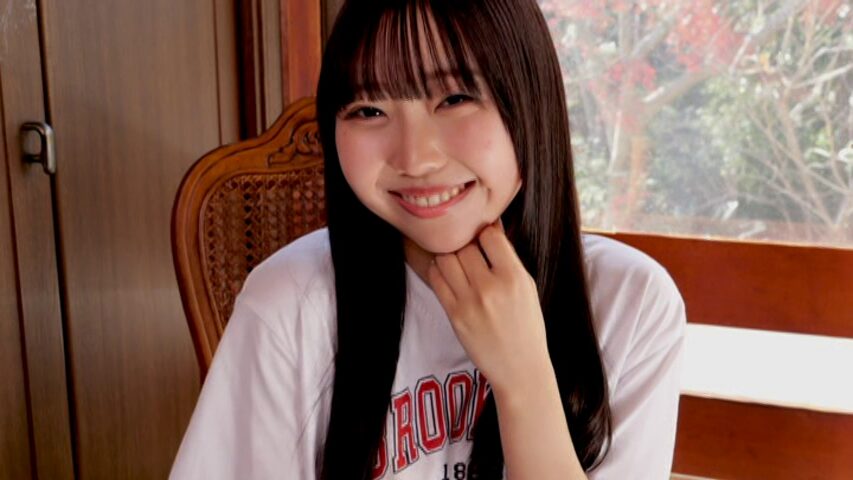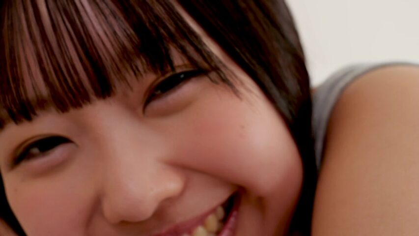 えぬちゃんが初めての作品で明るく元気に挨拶してかわいい水着姿を披露しています