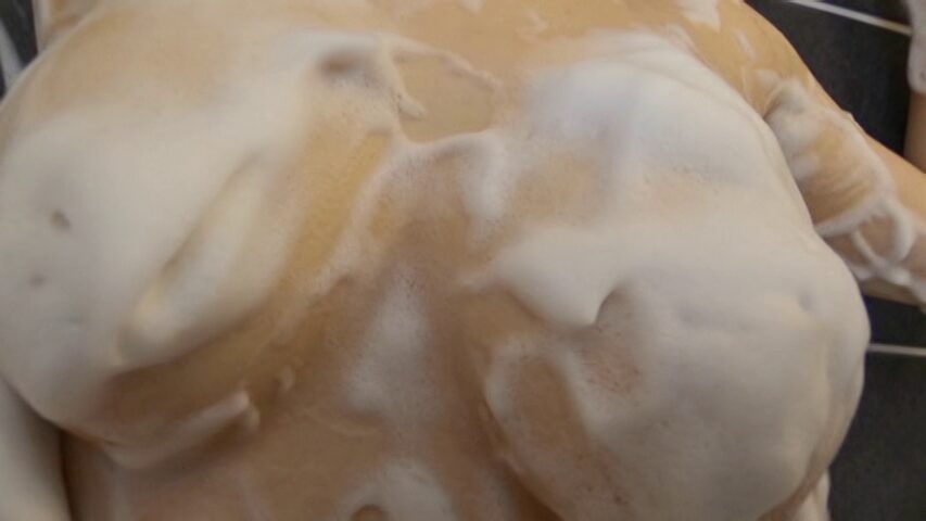続いての風呂シーンでは、泡まみれになりながら胸やお尻をマッサージされます。