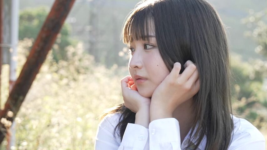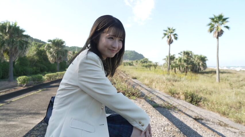 笑顔いっぱいのしえりさんのかわいいアップの顔でスタートし、海岸などで美しい姿を披露しています。