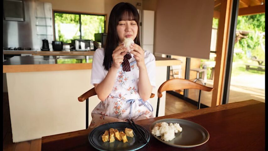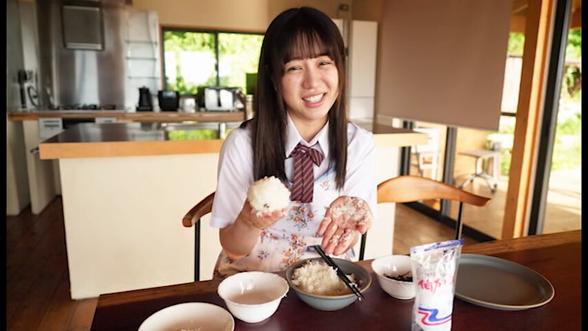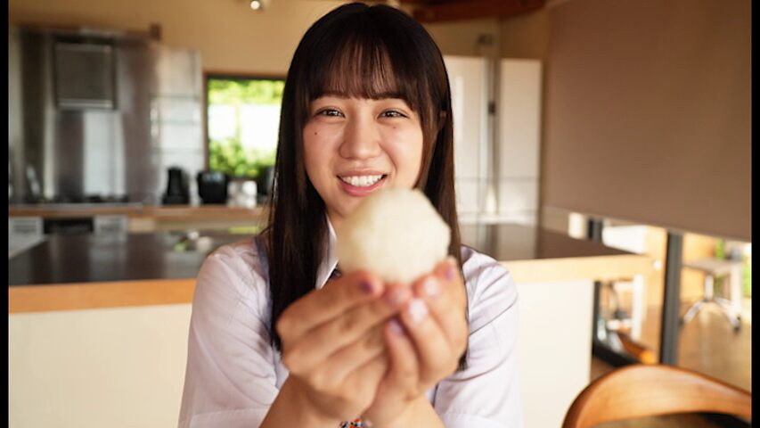 幸せそうにおにぎりをもりもり食べる優花さんです。