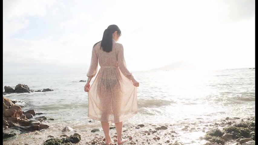 メイド姿になったり、ワンピース姿で海辺にたたずんだり、各シーンで幸せそうにする優花さんを観ることができます。