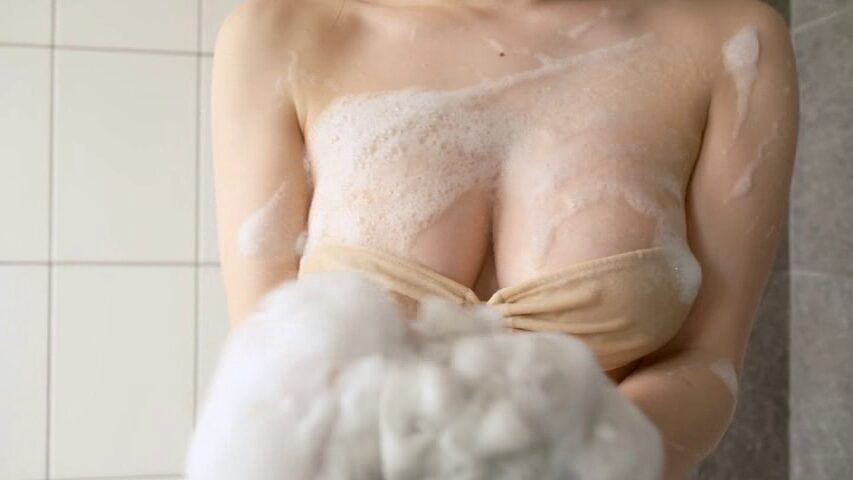 屋外でストレッチしたり、ベッドの上でセクシー水着を披露したり、シャワーシーンを見せています。