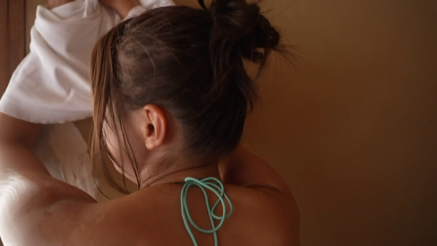 そのほかにもセクシーな水着を着た状態で体を触られてしまったり、水着を脱いで絆創膏を貼っただけの姿になってしまいます。