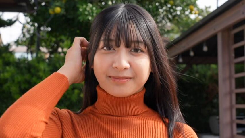 えぬちゃんが初めての作品で明るく元気に挨拶してかわいい水着姿を披露しています